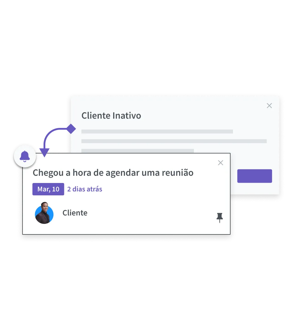 Crie automações e regras de relacionamento com lembretes para controle de periodicidade de contato, ciclos de venda, vigências contratuais, atualizações cadastrais, entre outros, e nunca mais perca clientes por falta de acompanhamento.